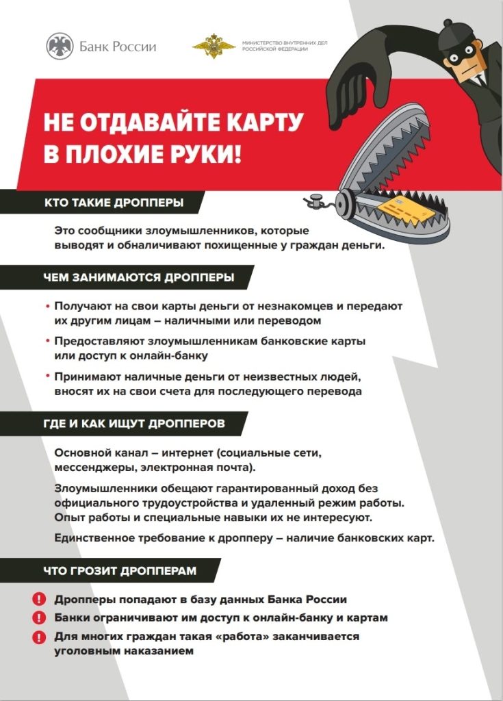 Никогда не передавайте свою карту третьим лицам (даже «друзьям» за вознаграждение).